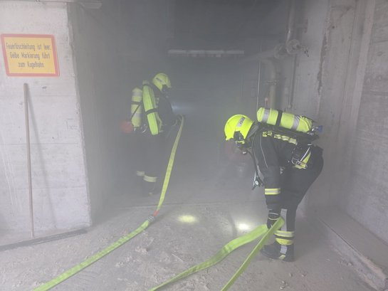 Übungsannahme war ein Brand und in der Folge ein stark verrauchter Förderbandtunnel mit einigen vermissten Personen die aus dem Tunnel gerettet werden mussten. Durch die Einsatzleitung wurde entschieden die Menschrettung und Brandbekämpfung über beide Seiten durchzuführen. Für die Atemschutzträger war es eine sehr kräftezerrende Angelegenheit die vermissten Personen in dem stark verrauchten Förderbandtunnel zu finden und diese dann mit den zur Verfügung stehenden Hilfsmittel daraus zu transportieren.